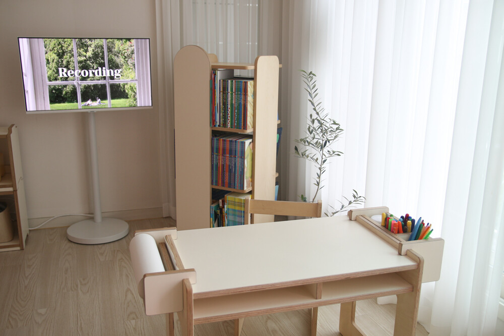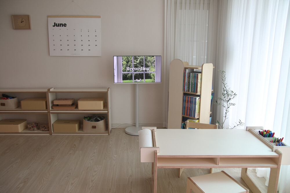 거치대는 흰색 hpl이 부착된 자재를 사용하여 제작되었어요.