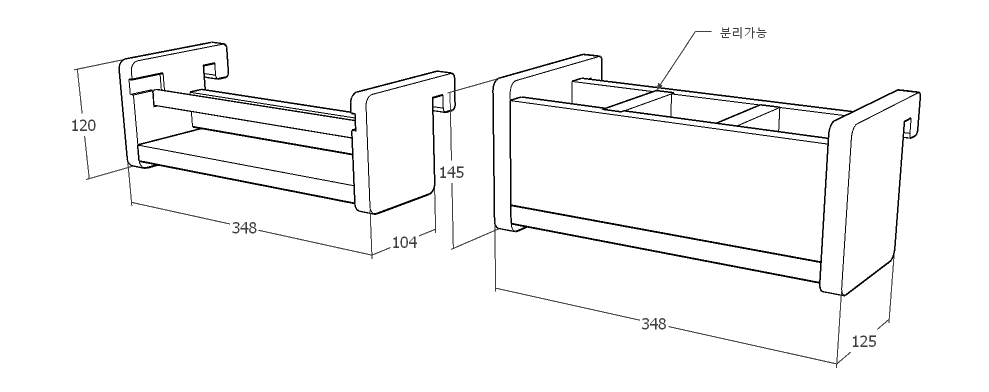 멀티 수납합은 1인용은 3칸, 2인용은 4칸을 수납할수있고
