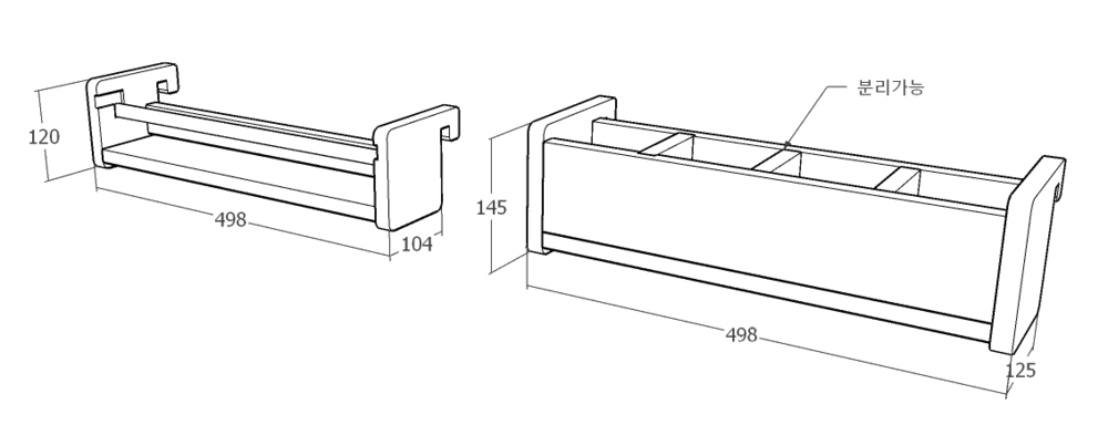 롤페이퍼 거치대와 멀티수납함 사이즈가 달라요.